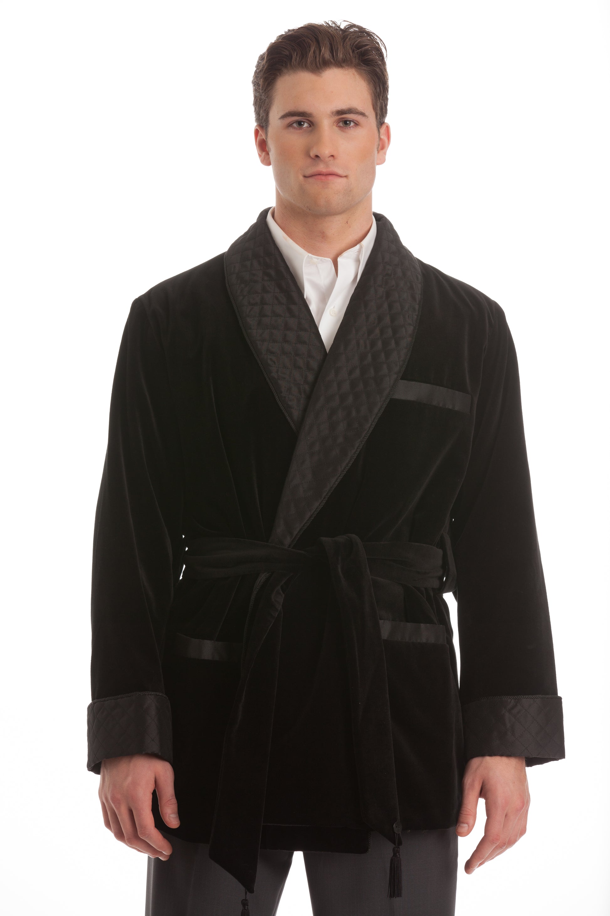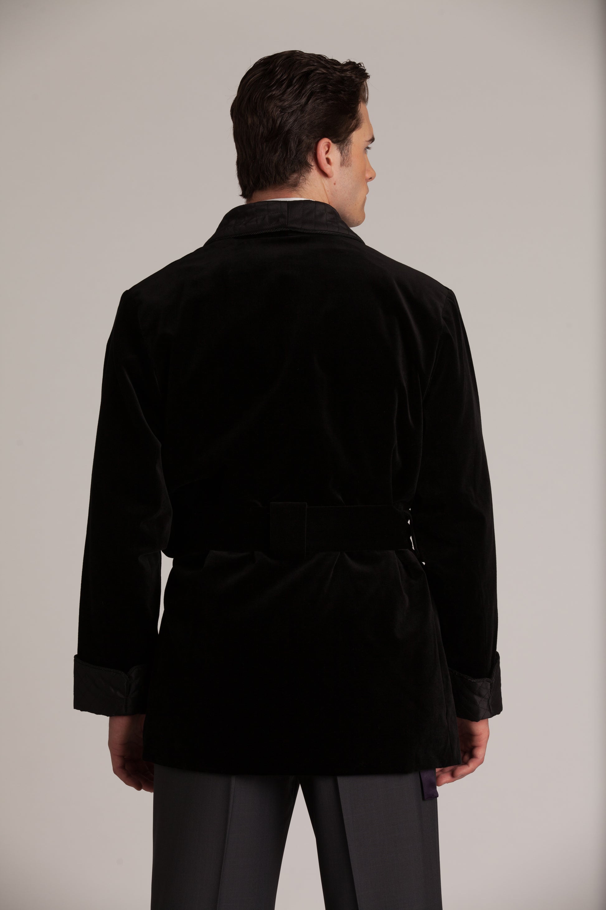 Velvet Smoking Jacket - Black with Black Quilted Collar